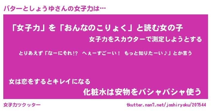 | 女子向けラノベタイトル風あだ名 | 『バターとしょうゆ姫と円卓の騎士』 |