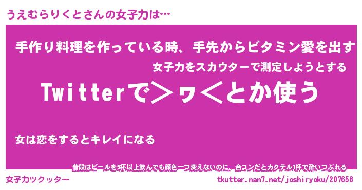 | 恥ずかしいあだ名 | 『プリティーうえむらりくと』『うえちん』 |