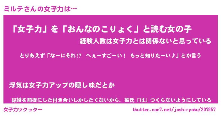 | ヘコむあだ名 | 『ミルもー』『なまこ酢』 |