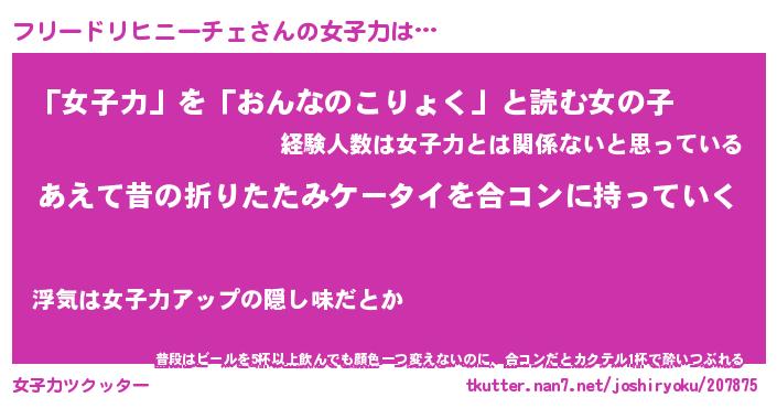 | 男性向けラノベタイトル風あだ名 | 『フリードリヒニーチェの憂鬱』 |