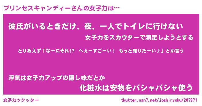 | 胡散臭い通販商品みたいなあだ名 | 『モテモテ間違いなし霊験あらたかなお札…その名も「プリンセスキャンディー」』 |