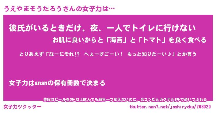 | ヘコむあだ名 | 『うえにゅー』『豆乳』『うえを』 |