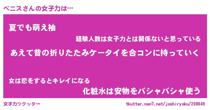 | ヘコむあだ名 | 『ペニっふぃ~』『なまこ酢』 |
