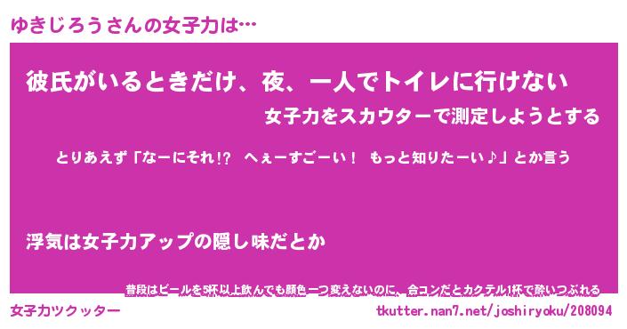 | ヘコむあだ名 | 『ゆきにゅー』『牛乳』『ゆきお』 |