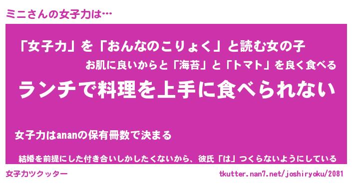 | ヘコむあだ名 | 『ミニにー』『なまこ酢』『ミニ太郎』 |
