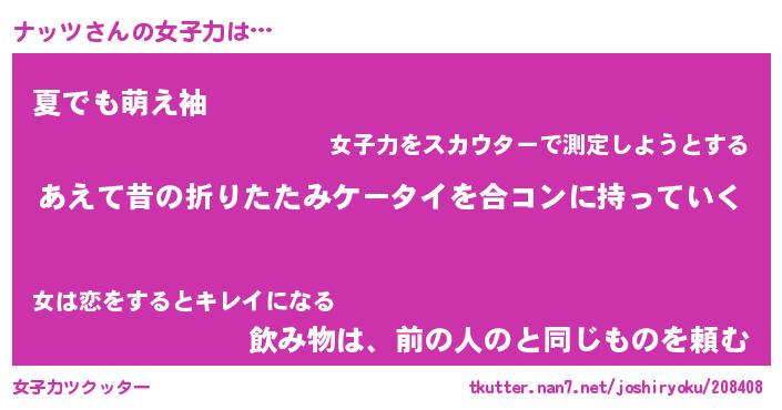 | ヘコむあだ名 | 『ナッもー』『なまこ酢』『ナッっぺ』 |