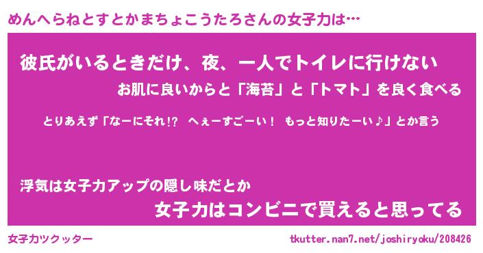 | 女子向けラノベタイトル風あだ名 | 『めんへらねとすとかまちょこうたろ姫と円卓の騎士』 |