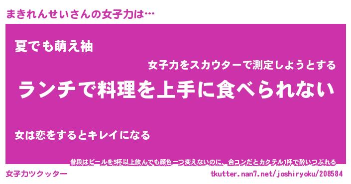 | ヘコむあだ名 | 『まきっふぃ~』『酢こんぶ』 |