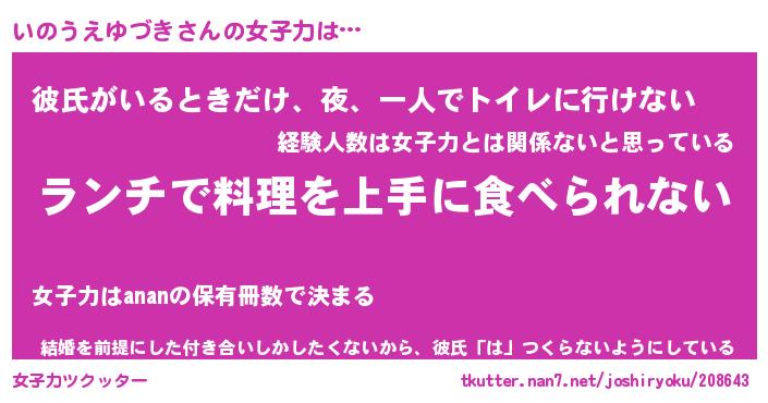 | 恥ずかしいあだ名 | 『プリティーいのうえゆづき』『いのちん』 |