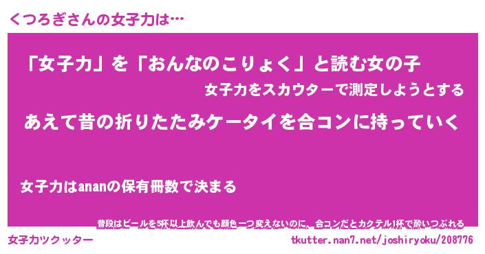 | ヘコむあだ名 | 『くつふぇ~』『豆乳』『くつお』 |