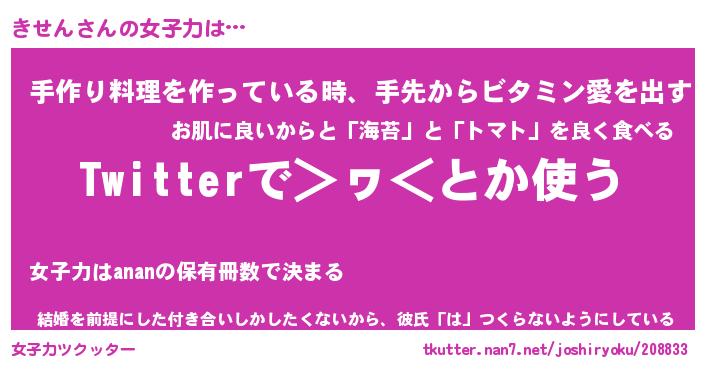 | ヘコむあだ名 | 『きせふぇ~』『つくし』『きせっぺ』 |