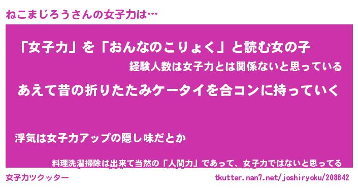 | ヘコむあだ名 | 『ねこにゅー』『レバニラ』『ねこお』 |