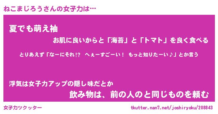 | ヘコむあだ名 | 『ねこにゅー』『なまこ酢』 |