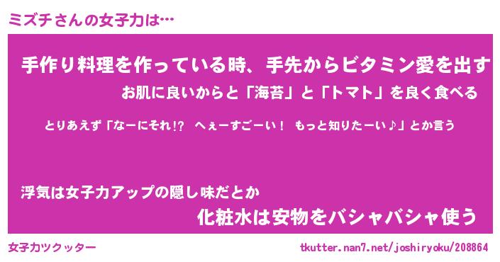 | ファンタジー風あだ名 | 『ミズフェル』『エターナルミズチー』 |