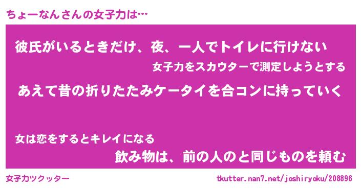 | ヘコむあだ名 | 『ちょっふぃ~』『豆乳』『ちょっ子』 |