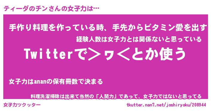 | ヘコむあだ名 | 『ティもー』『つくし』『ティっぺ』 |