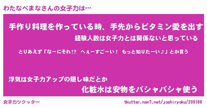 | 胡散臭い通販商品みたいなあだ名 | 『億万長者になれる水晶球…その名も「わたなべまな」』 |