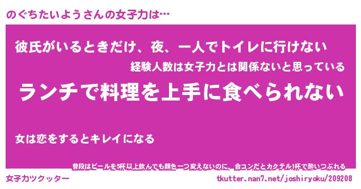 | 恥ずかしいあだ名 | 『プリティーのぐちたいよう』『のぐちん』 |
