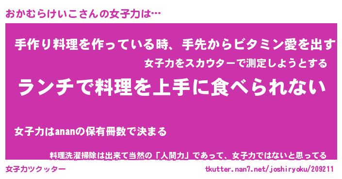| ヘコむあだ名 | 『おかっふぃ~』『つくし』『おかを』 |
