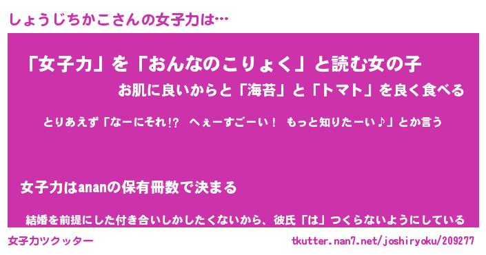 | 恥ずかしいあだ名 | 『プリティーしょうじちかこ』『しょちん』 |