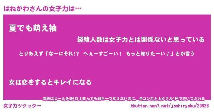 | ファンタジー風あだ名 | 『ハネフェル』『エターナルハネカワー』 |