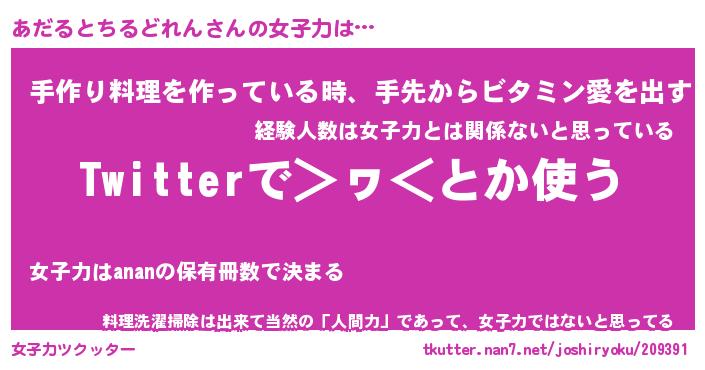 | ポケモン風あだ名 | 『アダチュウ』『アダルダネ』 |