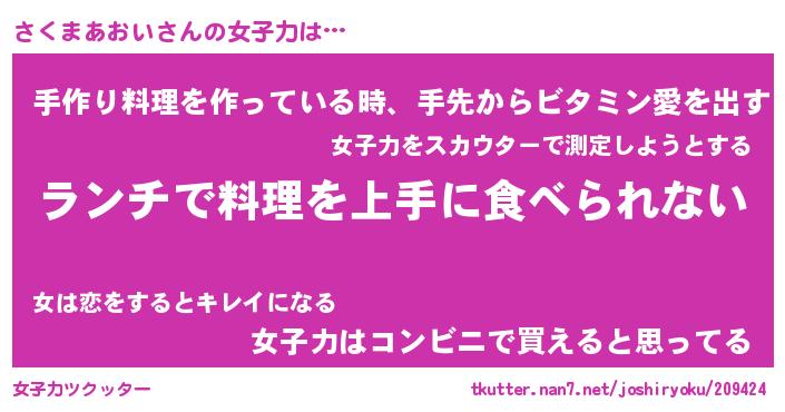 | 料理風あだ名 | 『ネギたっぷりさくまあおいの南蛮漬け』 |