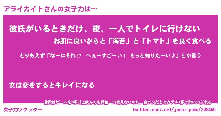 | 恥ずかしいあだ名 | 『プリティーアライカイト』『アラっちょ』 |