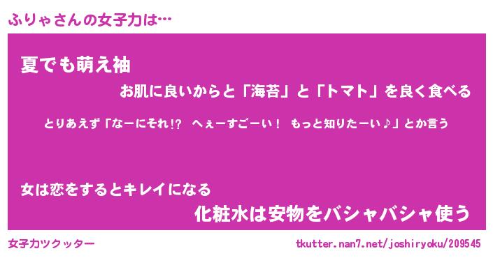 | ヘコむあだ名 | 『ふりにゅー』『なまこ酢』 |