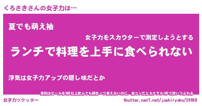 | ヘコむあだ名 | 『くろふぇ~』『なまこ酢』 |