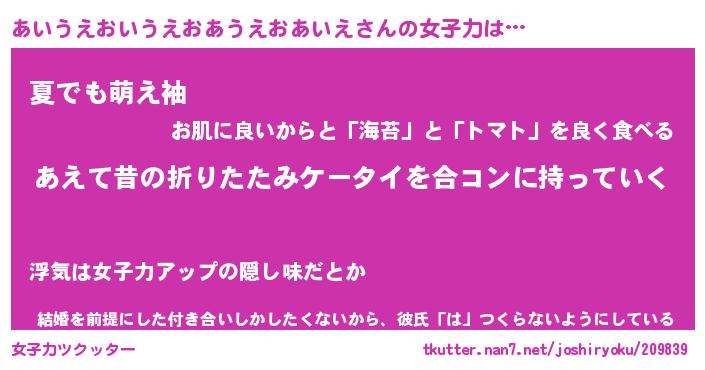 | ヘコむあだ名 | 『あいっふぃ~』『なまこ酢』 |