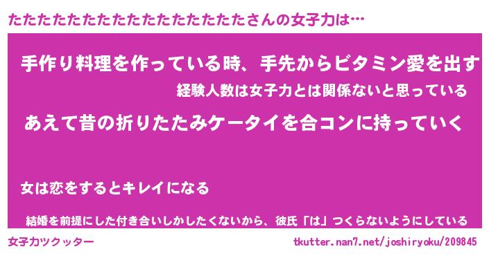 | 女子向けラノベタイトル風あだ名 | 『(仮)たたたたたたたたたたたたたたたたのやんごとなき事情』 |