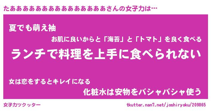 | 料理風あだ名 | 『ネギたっぷりたあああああああああああああああの南蛮漬け』 |