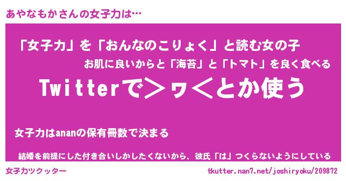| ヘコむあだ名 | 『あやにー』『牛乳』『あやっちょ』 |