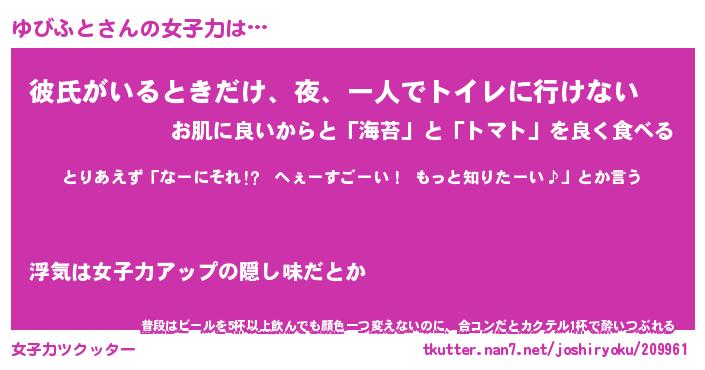 | ヘコむあだ名 | 『ゆびふぇ~』『牛乳』『ゆびっちょ』 |