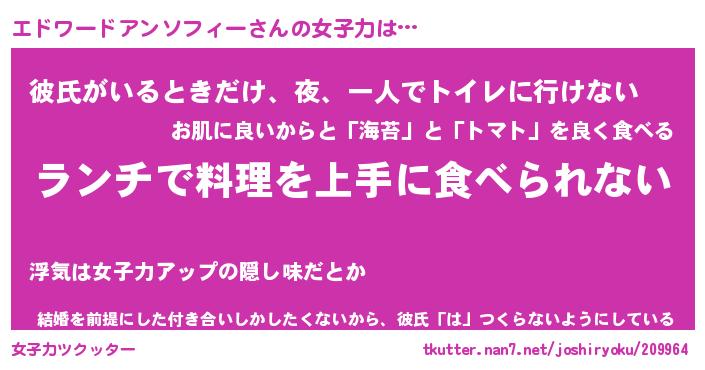 | 料理風あだ名 | 『ネギたっぷりエドワードアンソフィーの南蛮漬け』 |