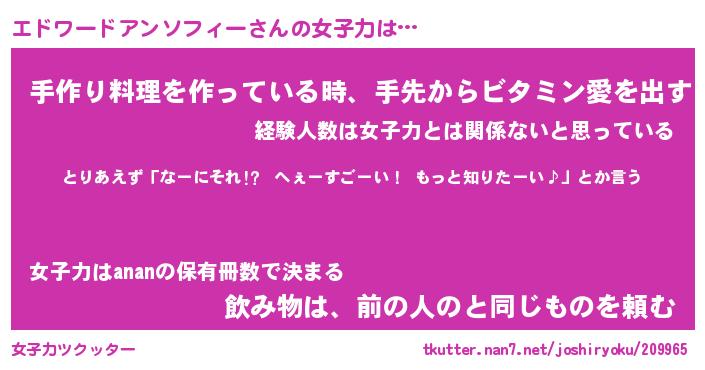 | 料理風あだ名 | 『ネギたっぷりエドワードアンソフィーの南蛮漬け』 |