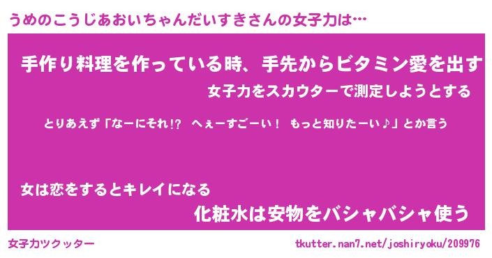 | ヒーロー風カッコイイあだ名 | 『スーパーウメノコウジアオイチャンダイスキ』 |