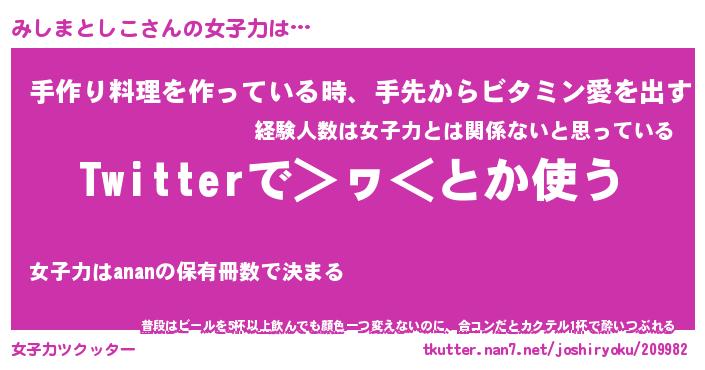 | 肩書あだ名 | 『みしまとしこ店長』『みしまとしこ班長』 |