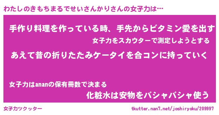 | 胡散臭い通販商品みたいなあだ名 | 『必ず成功するブレスレット…その名も「わたしのきもちまるでせいさんかり」』 |