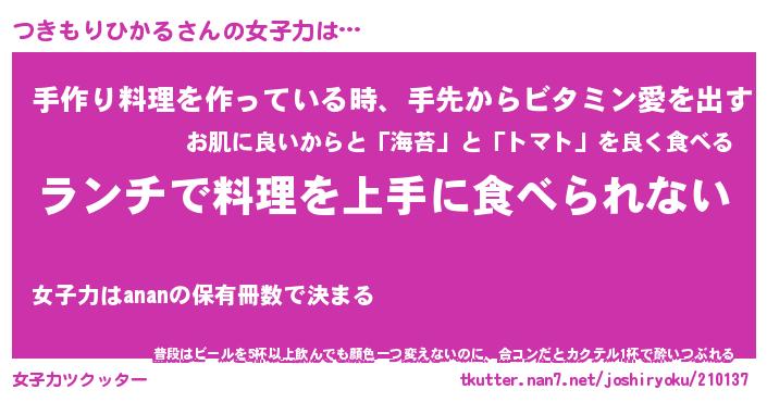 | ヘコむあだ名 | 『つきにゅー』『つくし』『つきっぺ』 |