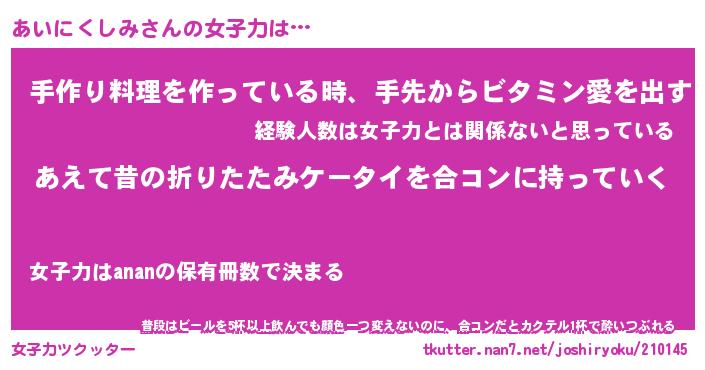 | 肩書あだ名 | 『あいにくしみCEO』『あいにくしみ副担任』 |