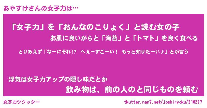 | ふっ …「あかさたなはまやらわ」 | 2月13日 08:57 |