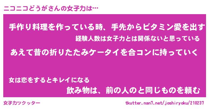 | 恥ずかしいあだ名 | 『プリティーニコニコどうが』『ニコちん』 |