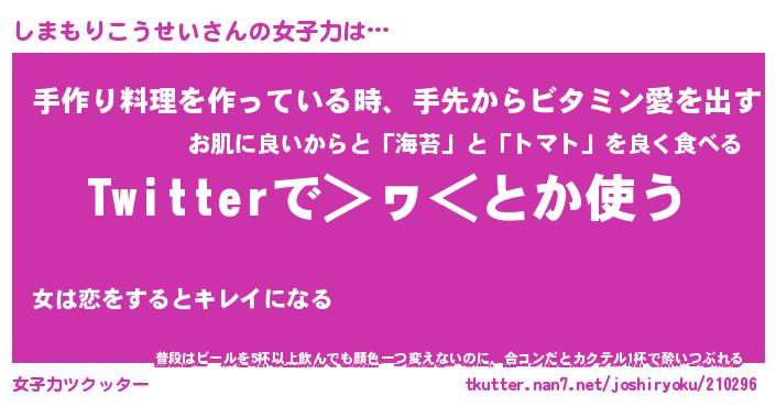 | ヘコむあだ名 | 『しまもー』『牛乳』『しまぷりん』 |