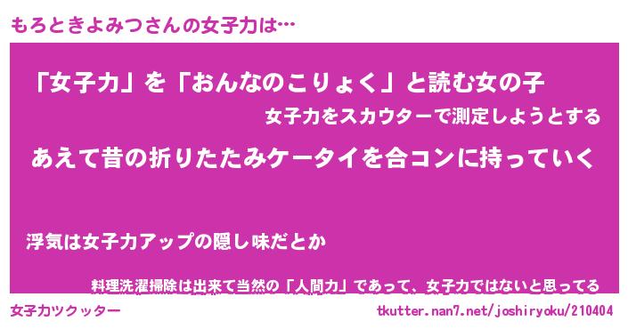 | 胡散臭い通販商品みたいなあだ名 | 『必ず成功するブレスレット…その名も「もろときよみつ」』 |