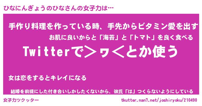 | 2回繰り返すあだ名 | 『ひなひな』『ひひなな』『うるうる』 |