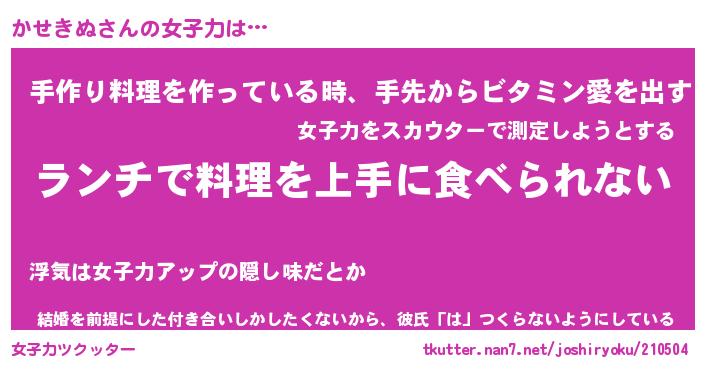 | 意味不明あだ名 | 『ペロリンかせきぬ』『永久保存かせきぬ』 |