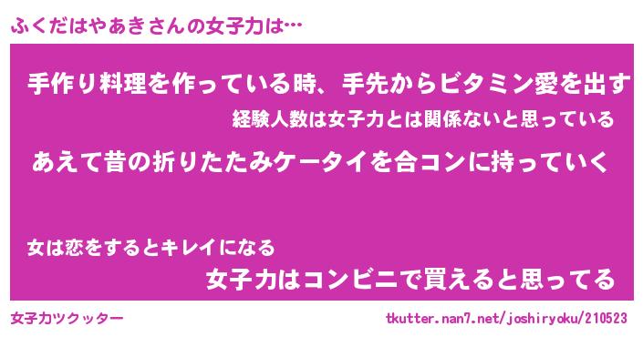 | ヘコむあだ名 | 『ふくっふぃ~』『牛乳』『ふく太郎』 |