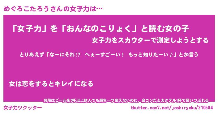 | ヘコむあだ名 | 『めぐにー』『つくし』『めぐ太郎』 |